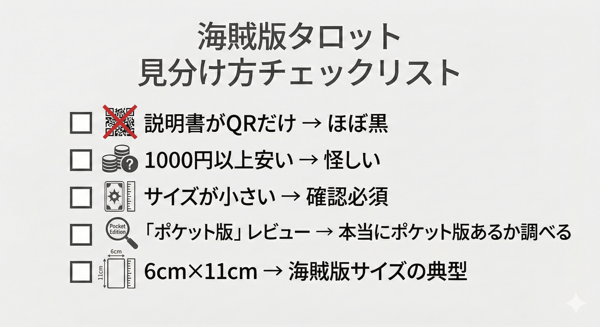 海賊版タロットの見分け方、ざっとこんな感じ。