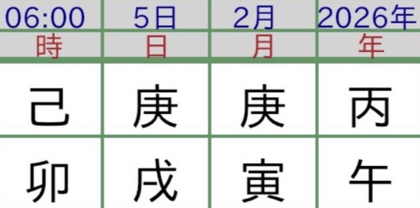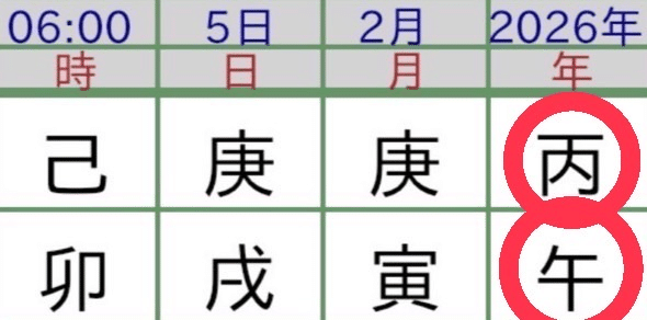 つまり丙午生まれだと、8マスのうち2マスが火で確定。